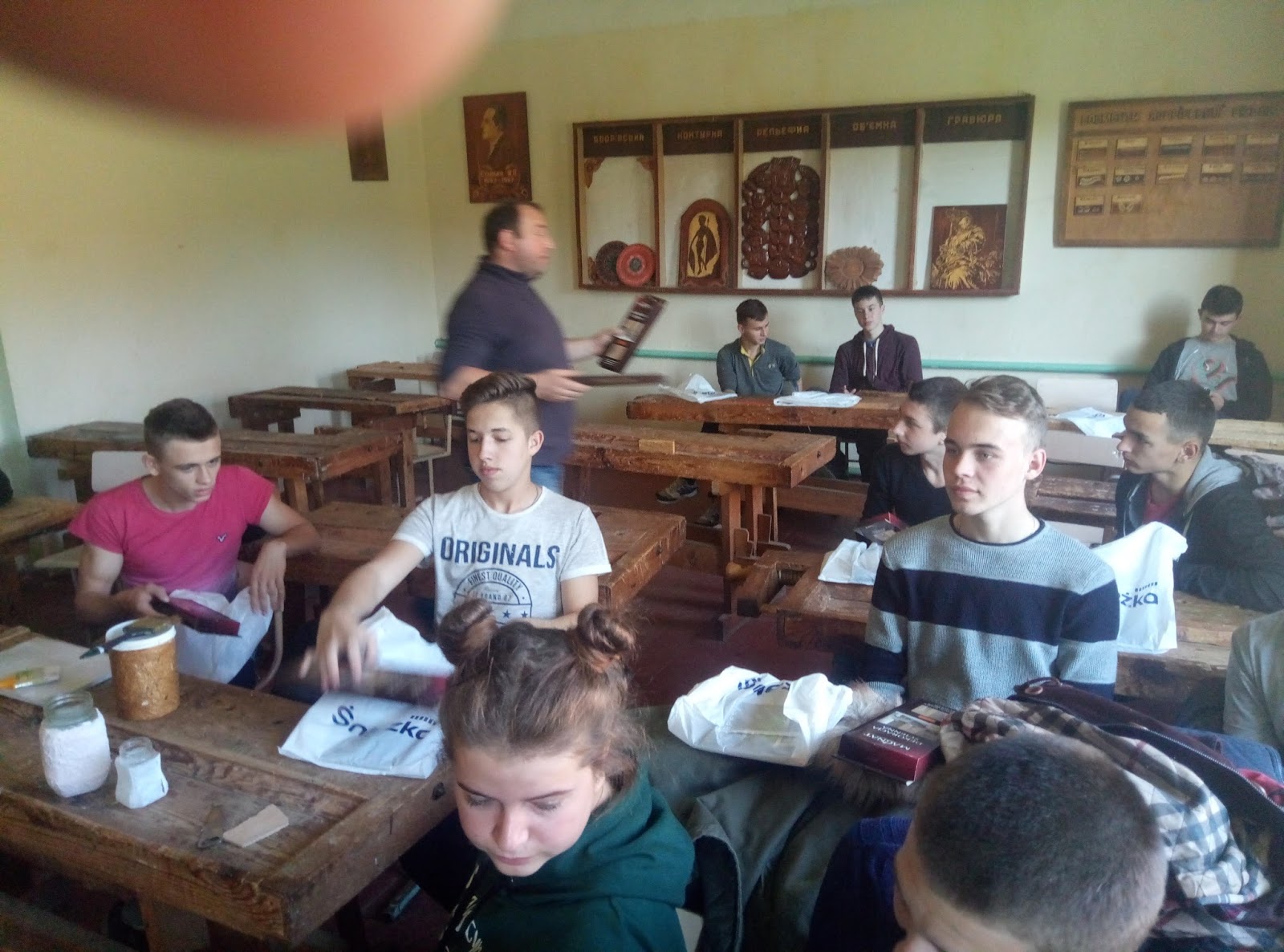 Учні 11-а класу мали гарну нагоду поспілкуватися з менеджерами ТЗОВ"Снєжка-Україна" Петрушкевичем Романом і Базюком Юрієм, які поділилися з ними секретами створення та використання фарб. Зустріч організував вчитель трудового навчання Гоза А.Р.